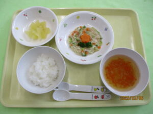 ブロッコリーのツナ和えから食べる子がたくさんいました🥦。具材はブロッコリーとツナだけですが、むしゃむしゃと良く食べてくれます😋。新しいお友だちが、今日から離乳後期食スタートです。とても上手に食べられましたよ🍚👏。