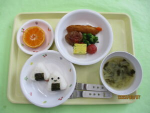 発表会の演目が絵本の『おべんとうバス』と聞いて、今日の給食はこれにしました🍙。たまご組さんたち、頑張ってね~💪。ばなな組さんたちも、「わぁ~かわいい❣」と歓声をあげて喜んでくれましたよ🥰。もちろん、おなか一杯、完食でした🚌。