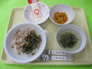チキンカレーはみんな大好きなようで一番最初に食べていました🍛 ツナコーンサラダも完食してくれる子が多かったです😃 スープもバナナも喜んで食べてくれましたよ!!