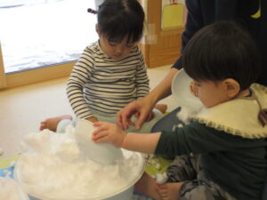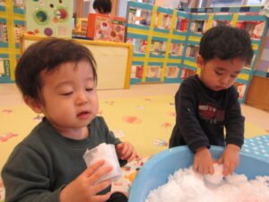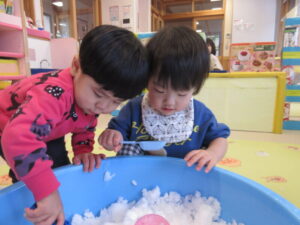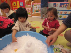 カップに雪をいれたり、コップに雪をいれたりして楽しんでいました!