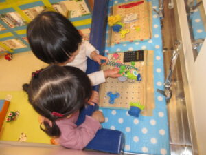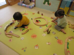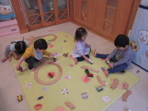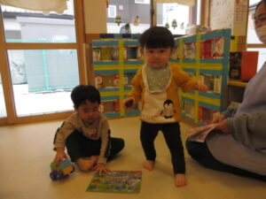 時々雪もチラチラ降ってきて寒くなってきましたね。お外は寒くても子ども達はお部屋の中で元気いっぱい遊んでいますよ!