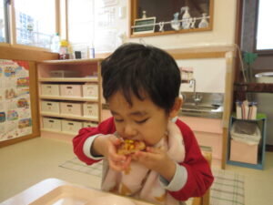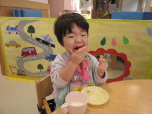 そして三時のおやつは米粉を使ったピザです!もちもちしていて美味しかったね💗おかわりするお友だちもいましたよ😊