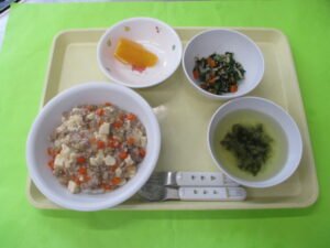 野菜麻婆丼・スープ・ナムル・オレンジ