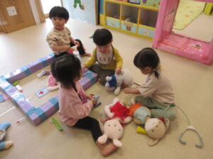 お部屋に戻ってからはお人形あそびをしました。お医者さんになったり、お世話をたくさんしてくれましたよ💗