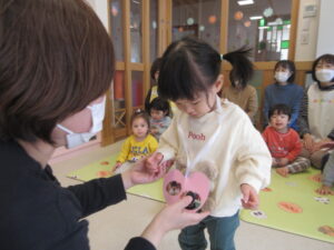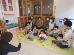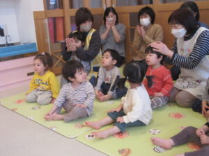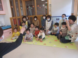 今日は1年を振り返り、みんなで大きくなったね、がんばったね💗と、一つお兄さんお姉さんのクラスになるんだよ!のお話をする会をしました。