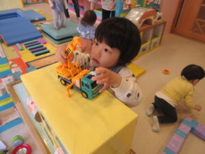 お兄さん達が車で遊んでるところに、「ぼくもまぜて~」と近づいて行きました😃この後、車で一緒に遊べて大満足🎵