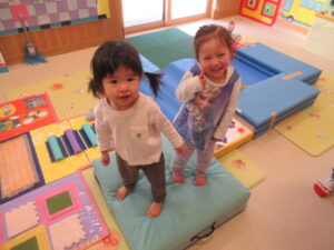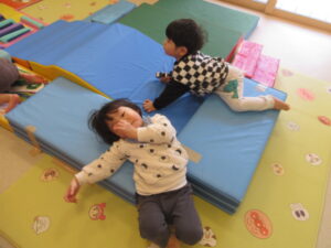 トランポリンが楽しくてジャンプしたり、マットが気持ちよくてゴロゴロしたり~🎵