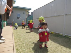 「まて~🎵」と風に舞ってとんでいくシャボン玉を一生懸命追いかけていました😄