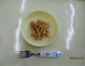 15時おやつは、きな粉マカロニです。
