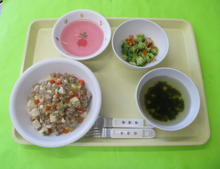 今日はお休みの子もいましたが、ひよこ組ばなな組とも早く食べ終わって、ピカピカの完食デーでした🐟。ひじき煮のいんげんや高野豆腐なども誰も嫌がらず、『美味しい!☺』と言って食べてくれました💕。