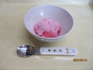今日はベビー園の楽しい夏まつり。給食も焼きそばや唐揚げ・枝豆と茹でとうもろこしで夏祭り気分いっぱいです🌽。そしてデザートにはスイカがつきましたよ🍉。さや付きの枝豆を先生に出してもらったり、自分でやってみたりして、みんな楽しそうでした🥰。